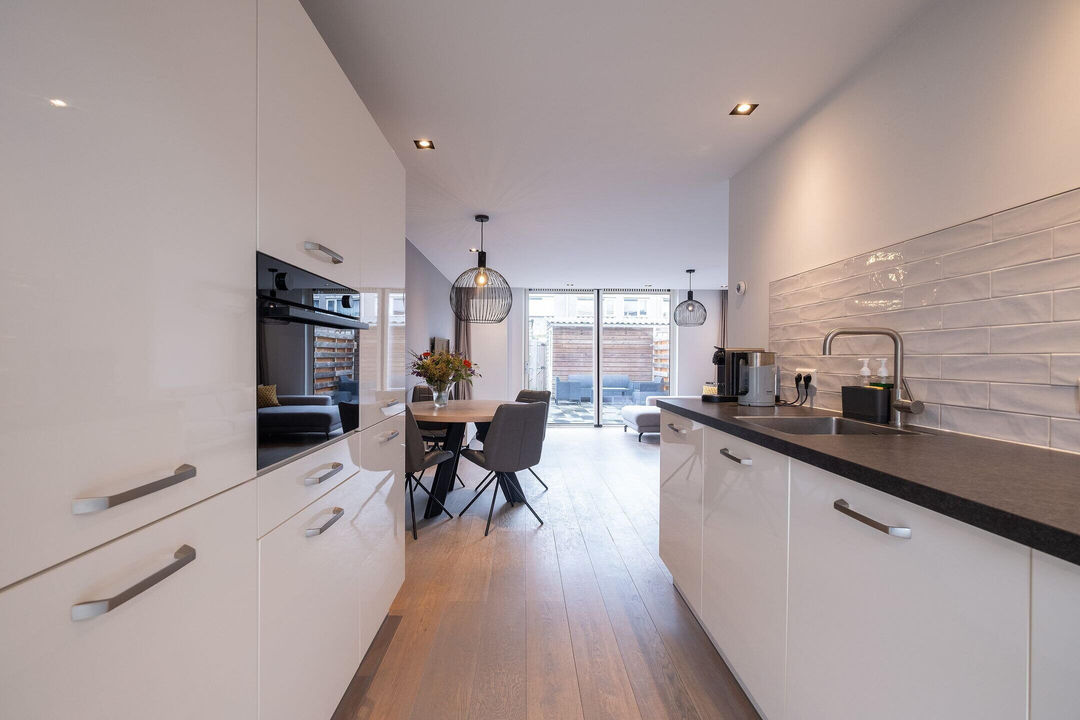 De keuken (2018) is praktisch ingedeeld en voorzien van voldoende werk- en bergruimte. Compleet met een 4-zone inductieplaat, oven (2026), koelkast, vriezer en uiteraard een vaatwasser.