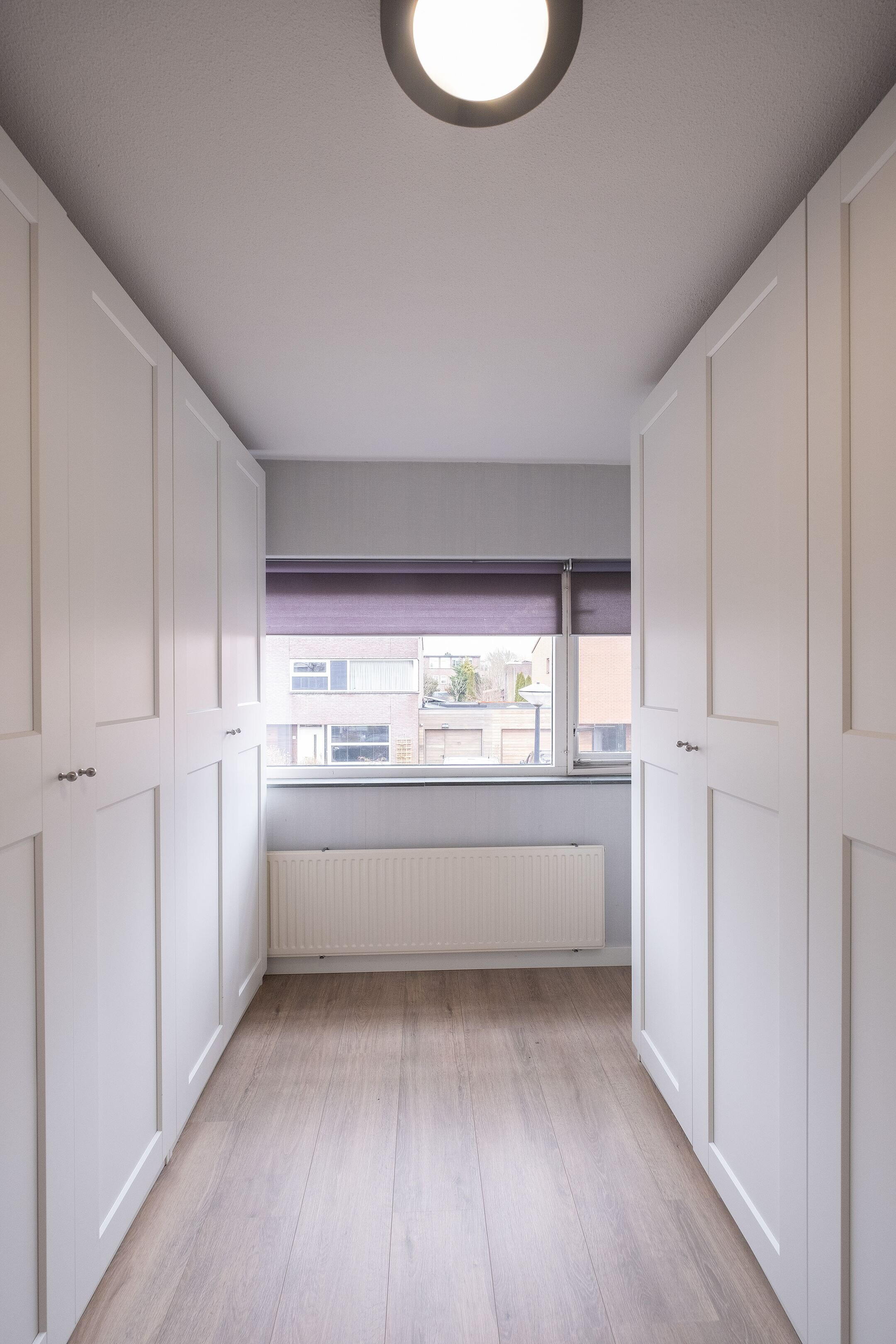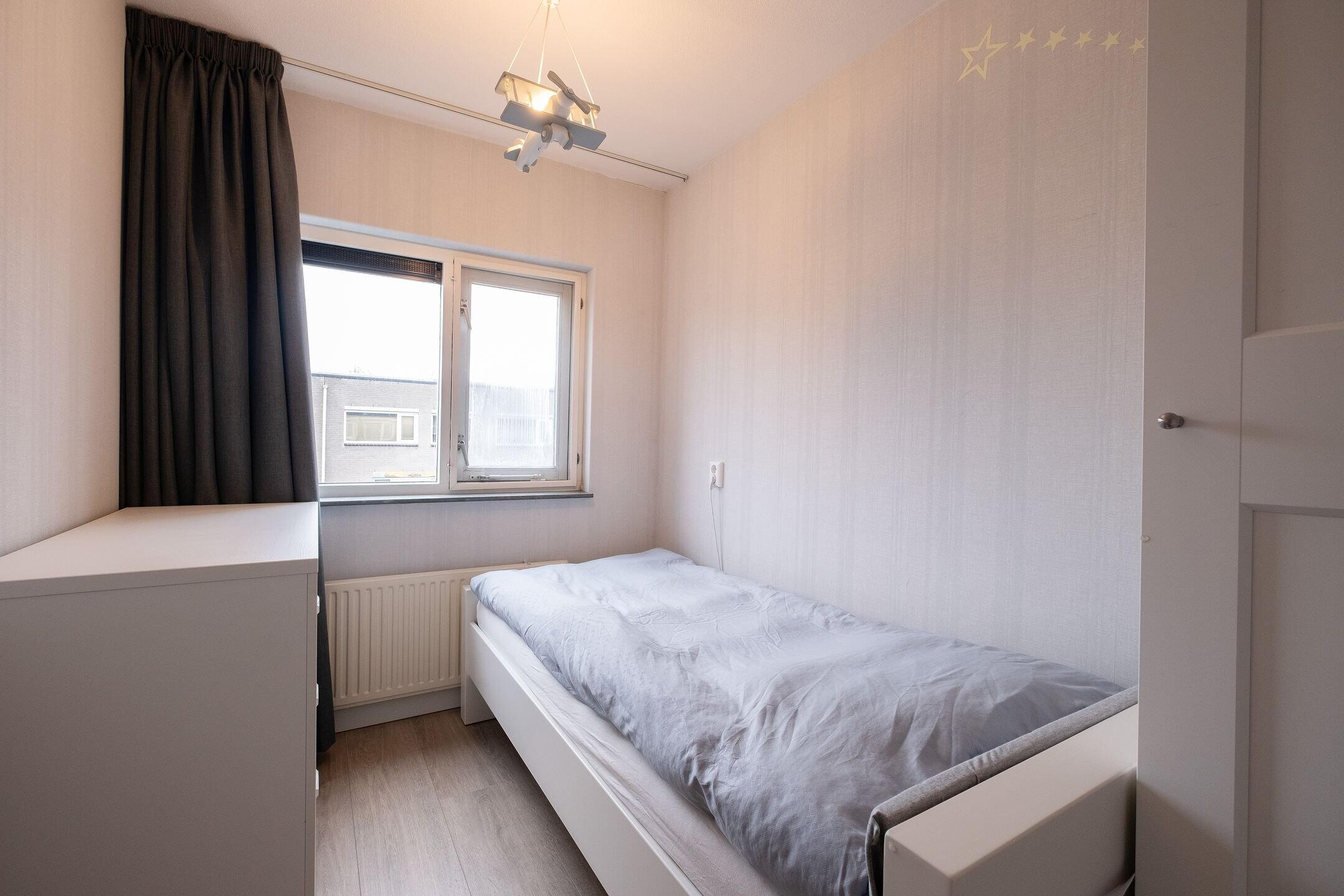 Op de eerste verdieping vind je drie nette slaapkamers, allemaal voorzien van laminaatvloeren en neutrale wandafwerking. Op de overloop is eveneens een airco aanwezig. De badkamer (2018) is compleet uitgevoerd met een inloopdouche, wastafelmeubel, tweede toilet en designradiator.